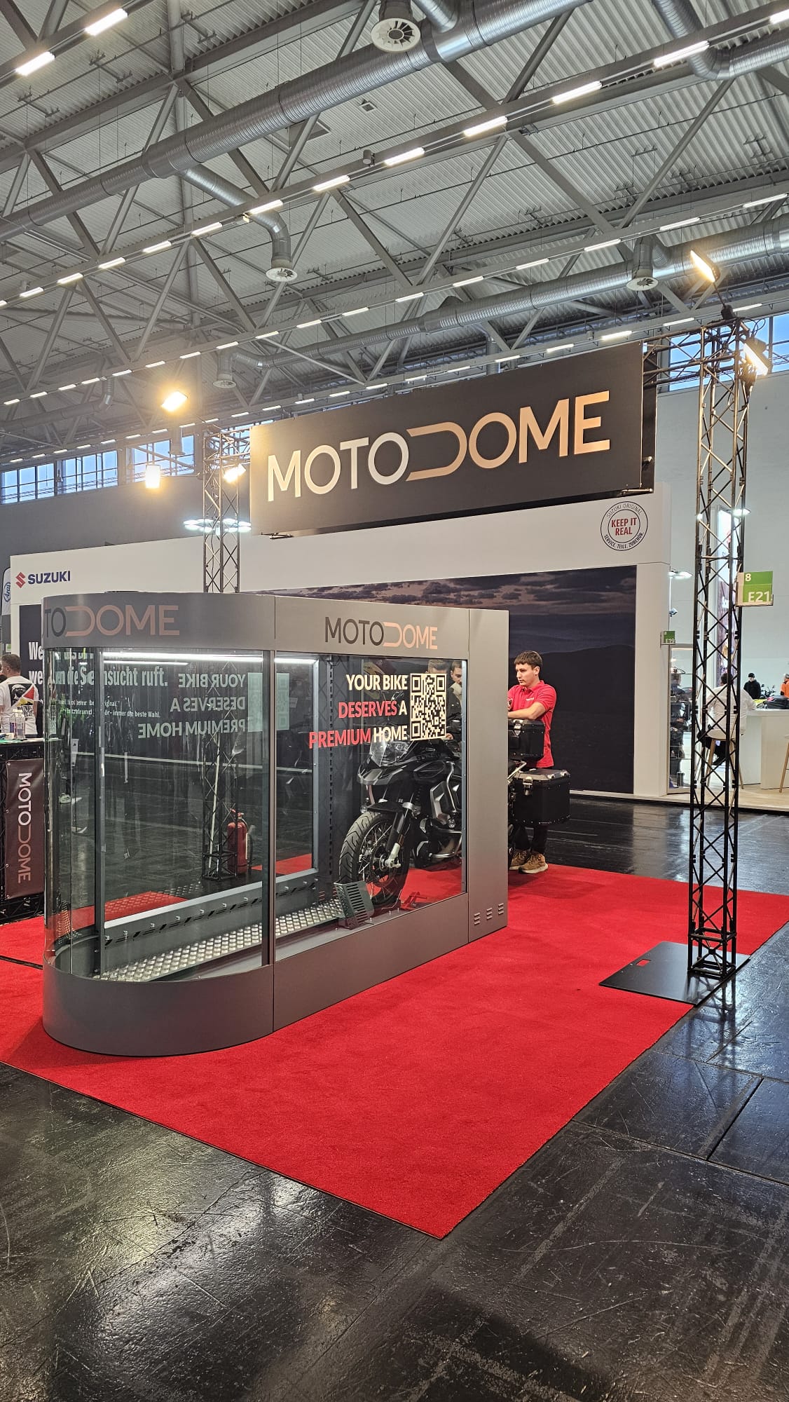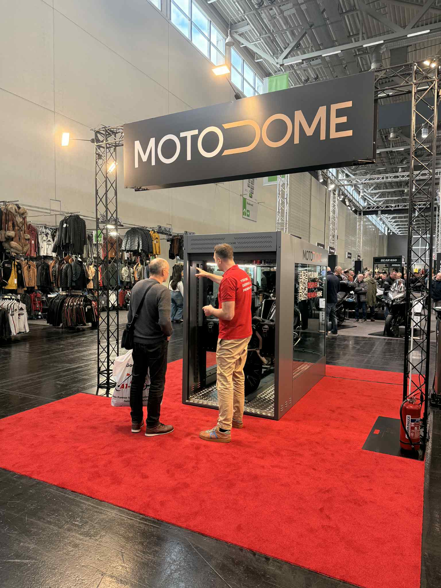 MotoDome is built like a fortress — featuring a durable stainless steel frame, reinforced tempered glass panels, and an RC2-certified security lock. For added peace of mind, it comes equipped with an AJAX alarm system — awarded “Security Alarm of the Year” at IFSEC in London.